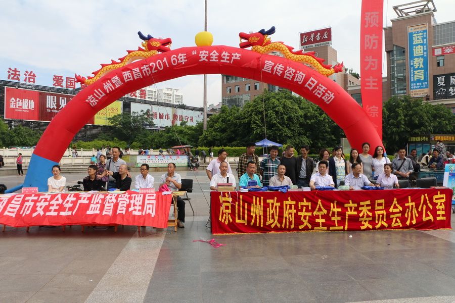 6月16日上午,以“强化安全发展观念,提升全民安全素质”为主题的2016年凉山州“安全生产宣传咨询日”活动在西昌市月城广场隆重举行。凉山州、西昌市政府安委会成员单位,中央、省属在昌和州重点企业共82家参加了此次活动。