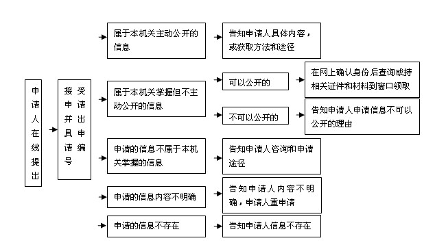 (2)属于掌握但不主动公开的信息,若可公开,可在网上确认身份后查询,或持相关证件和材料到相关窗口领取(本机关办公室);若不可公开,则告知申请人不予公开的理由;